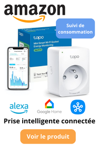 - Prises connectées : avec suivi de consommation (exemple : TP-Link Tapo, Meross, Eve Energy, Link2Home, etc.), les données récoltées sont visibles depuis une application mobile et compatibles avec Alexa, Google Home, Apple Home et Home Assistant,